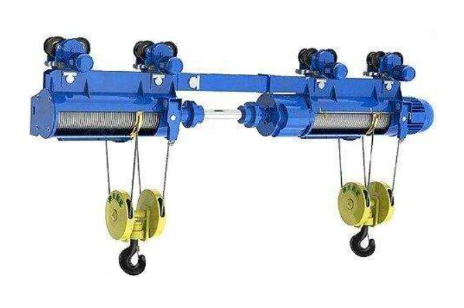 制、度閃現(xiàn)及遙控等輔佐功能。是用傳動軸相銜接的兩個葫蘆為雙速鋼絲繩電動葫蘆。適用于吊運超長工件或物品。鉤距可根據(jù)用戶要求進行非標規(guī)劃制造。雙鉤鋼絲繩電動葫蘆為定做產(chǎn)品。